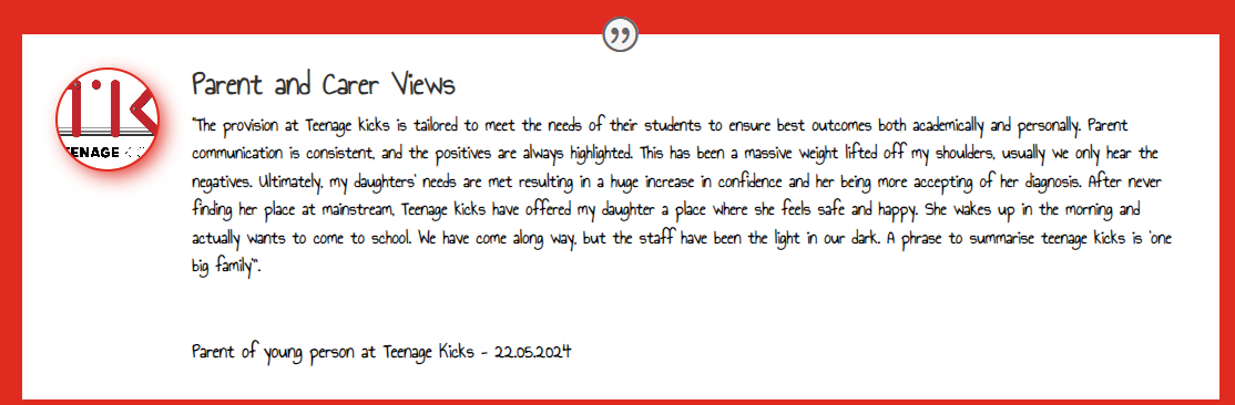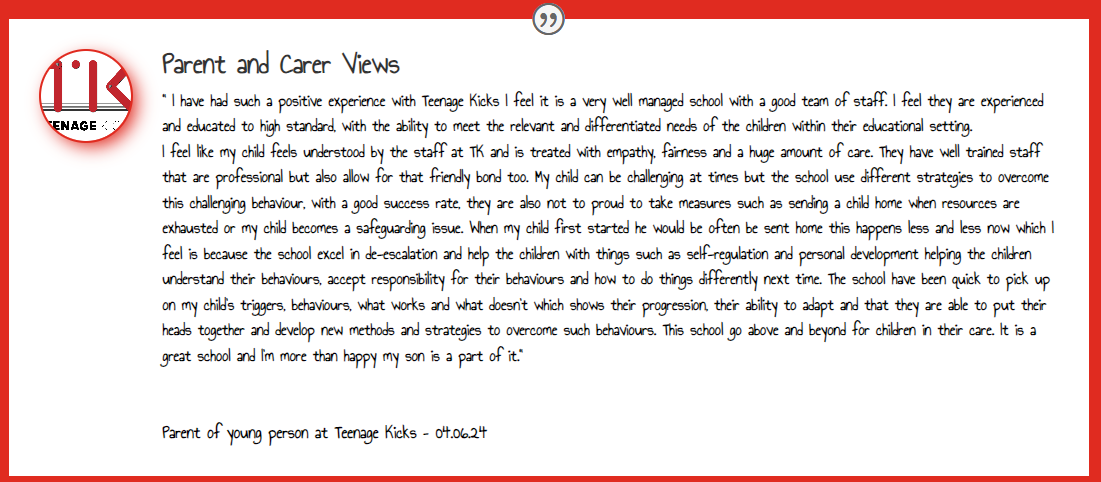 Consultations for a placement for a young person are received from the Local Authority SEND Team. The Education Health and Care Plan is sent to Teenage Kicks where it is received and reviewed by a member of SLT and the SENDCo. If we believe we can make a positive impact for the child and we can meet their special educational needs we will invite the young person and their parents/carers in to visit the school and to meet the team to ensure all parties are in agreement that our school would be the best placement for the pupil. We will respond to the Local Authority within 15 days from receipt of the consultation, as per the SEND Code of Practice.
