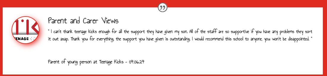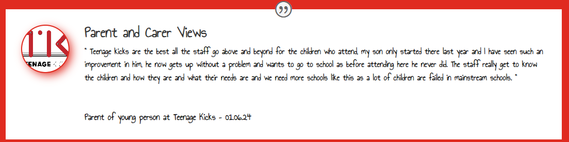 We value and pride ourselves on ensuring that the young people who attend Teenage Kicks have the best possible outcomes to succeed in society. We value each pupil individually and support each pupil in the best possible way we can through ‘Engagement’, ‘Progress’ and ‘Outcomes’.